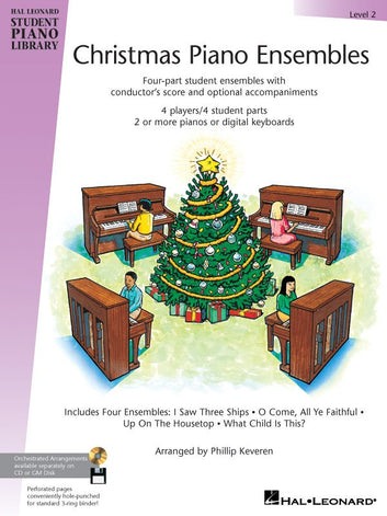 Four-part student ensembles, arranged for two or more pianos by Phillip Keveren. These ensembles feature favorite Christmas carols and hymns in graded books that correspond directly to the HLSPL Piano Method levels. CD and GM disk accompaniments are available for all levels. Each book inthe Christmas Piano Ensembles series includes: 4 individual student par ts for each song on perforated, tear-out sheets (Performance requires purchase of only one book per ensemble team); A conductor's score with optional teacher accompaniment; Performance configurations for 2 or more pianos; Suggested instrumentation for digital keyboard. Level 2 includes: I Saw Three Ships · O Come, All Ye Faithful (Adeste Fideles) · Up on theHousetop · What Child Is This?.