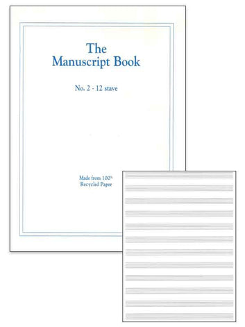 Made from 100% recycled paper this stapled book contains 24 double-sided pages giving you 48 pages of useable manuscript. Each page includes 12 standard sized staves.