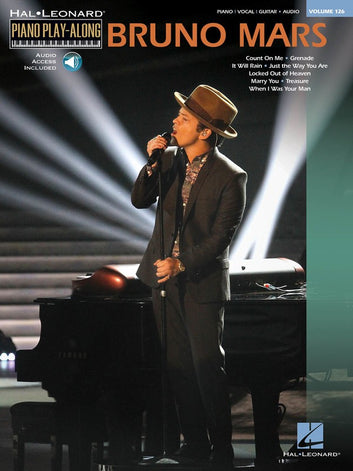 This is a fun way to experience what it's like to play in your very own band! Your favourite Bruno Mars music comes to life with this innovative Piano Play-Along series! With these book/CD collections, piano and keyboard players can practice and take the lead with professional-sounding accompaniments. Containing eight great songs, the books feature new engravings, with a separate vocal staff, plus guitar frames, so players and their friends can sing or strum along. The CDs feature two tracks for each tune: a full performance for listening, and a separate backing track that lets players take the lead on keyboard or piano. The high-quality, sound-alike accompaniments exactly match the printed music. This volume includes eight of Bruno Mars' best, including: Count on Me • Grenade • It Will Rain • Just the Way You Are • Locked Out of Heaven • Marry You • Treasure • When I Was Your Man.