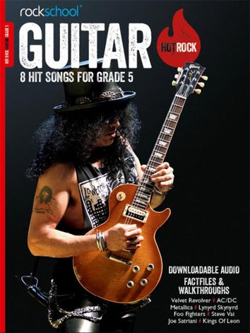 Hot Rock Guitar - Grade 5 includes eight hit songs to play in your Rockschool exam, GCSE music or just rocking out. Hot Rock Guitar - Grade 5 works in addition to your Rockschool Guitar Grade 5 book to provide you with further song choices for your exam. You can select up to two pieces from Hot Rock to play in your Rockschool Guitar Grade Exam or three to play in your Rockschool Guitar Performance Certificate. Featuring: Back In Black [AC/DC] Radioactive [Kings Of Leon] The Crying Machine [Steve Vai] Surfing With The Alien [Joe Satriani ] Sad But True [Metallica] The Pretender [Foo Fighters] Fall To Pieces [Velvet Revolver] Sweet Home Alabama [Lynyrd Skynyrd] Plus: 8 of the best rock tracks – 8 world renowned artists TAB and Standard Notation GCSE friendly: schools can use for GCSE music Fact Files: band and artists background information with recommended listening Walkthroughs: in-depth guidance on every track Amp settings: get the right tone with authentic amp settings for each track Downloadable audio: easily access the audio content online Learn by playing the music you love Find out more about Rockschool Guitar exams at www.rockschool.co.uk/qualifications/gradedmusicexams/guitar.